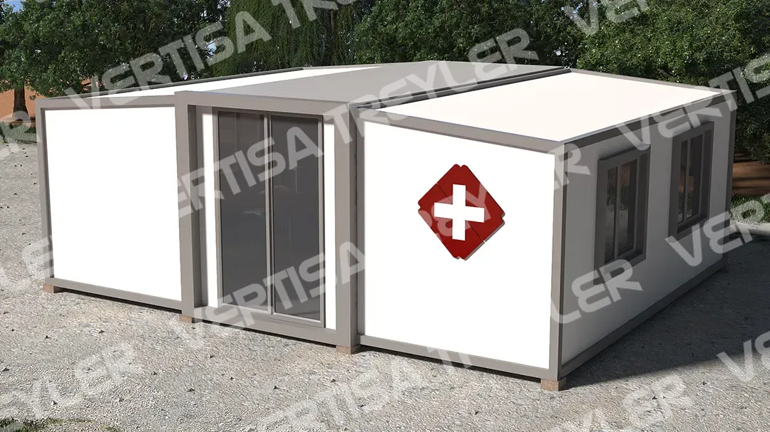 Vertisa Yeni Nesil Treyler ve Römork Sistemleri tarafından projelendirilip imalatı sağlanan katlanır konteyner olası afet durumlarında acil barınma ihtiyacına yönelik olarak tasarlanır. Vertisa Yeni Nesil Treyler ve Römork Sistemleri bu alandaki üretiminde hem ülkemizin hem de yurt dışının taleplerini karşılayabilecek kalite standartlarında en son teknolojik gelişmelerin ışığı altında çalışmalarına devam etmektedir.